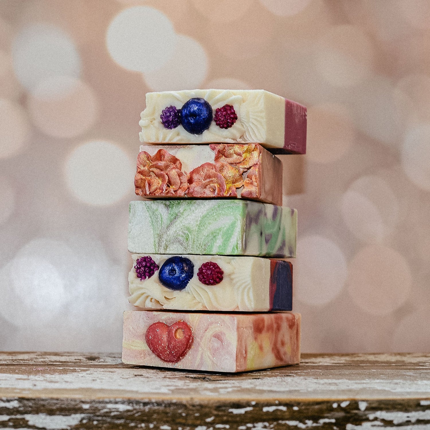 Solid cakes of soap art; whimsical designs to delight and cheer with...