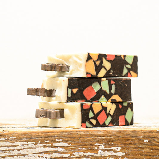 Solid cakes of soap art; whimsical designs to delight and cheer with...