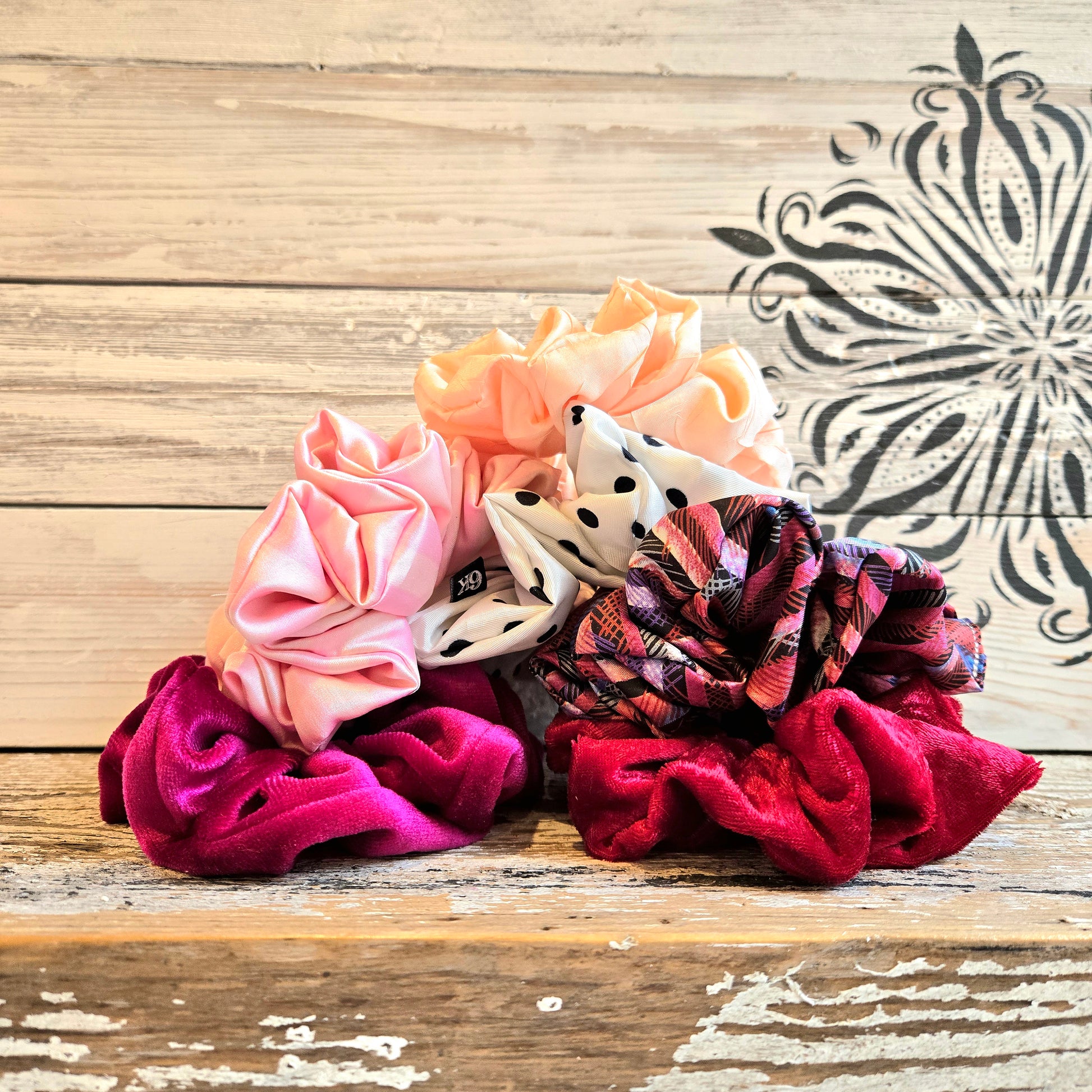 Soft and elegant fresh off the farm satin scrunchies offer luxurious depth and texture. Show your true colors while feeding farm animals or accessorize on your wrist for an outing with Valentine vibrancy in loving hues.